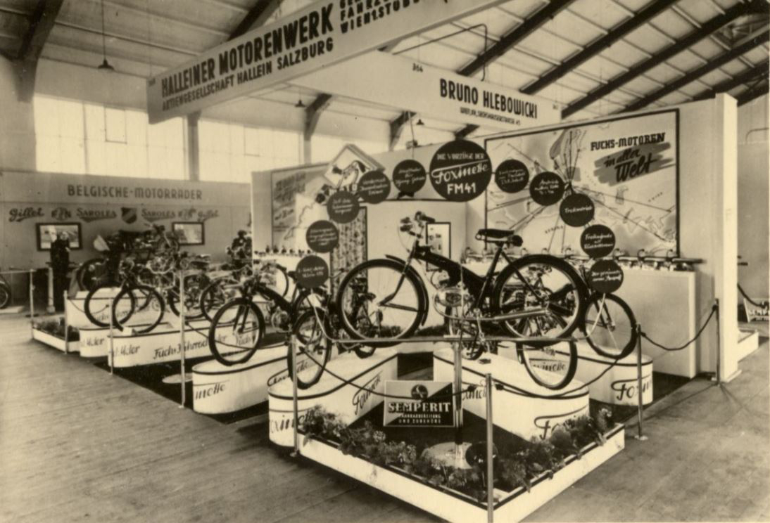 1951 kam mit der Fuchsinette, in Serie dann Foxinette, eines der frühen motorisierten Fahrräder in den Handel und damit das erste Serienmoped Österreichs*. 1952 firmierte das Unternehmen als Halleiner Motorenwerke AG.
